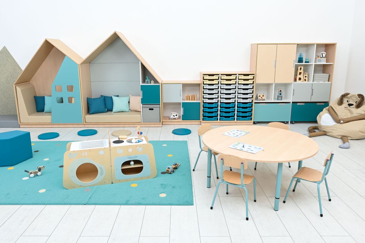 Med farver kan du opdele rum i zoner, så børnene nemt kan navigere mellem legeområder, læsehjørner og stillezoner. Det giver overskuelighed og understøtter både trivsel og læring.