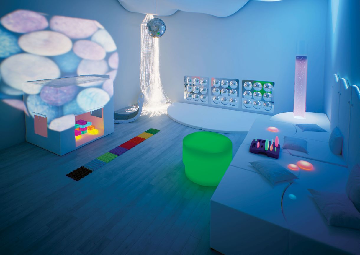 Indhold og niveau tilpasses lokalets størrelse, budget, målgruppe og det pædagogiske/terapeutiske formål. En harmonisk sammensætning af lys, lyd og taktile elementer skaber det bedste udgangspunkt for trivsel, læring og udvikling.